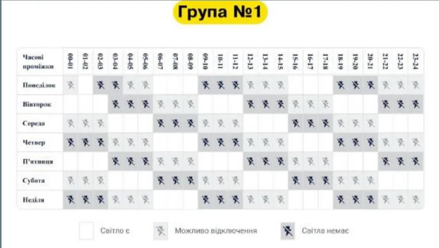 the schedule is from Monday to Sunday please look opposite the white squares there is time at this time we are given electricity at other times there is no electricity.